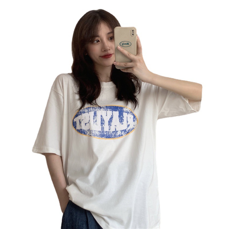 美式复古潮牌印花短袖T恤女夏新款个性做旧欧美高街半袖上衣