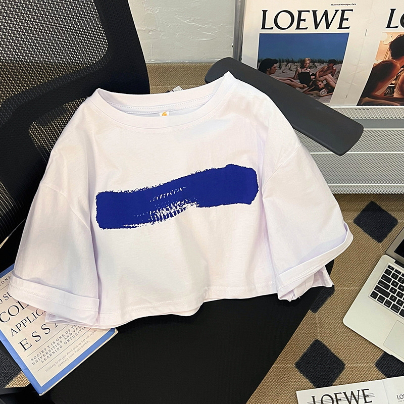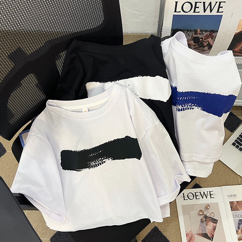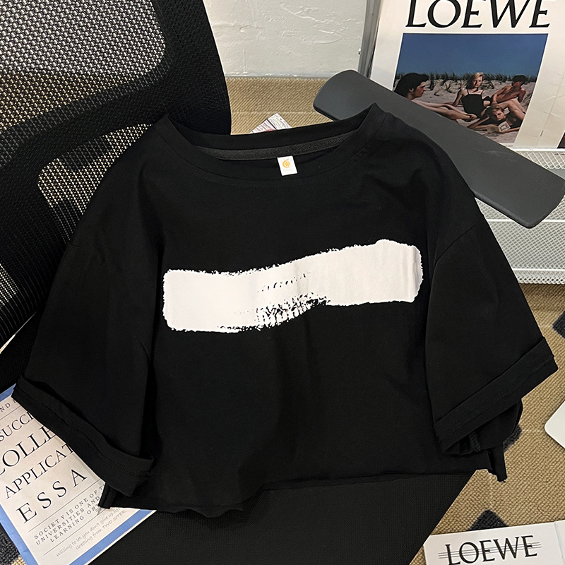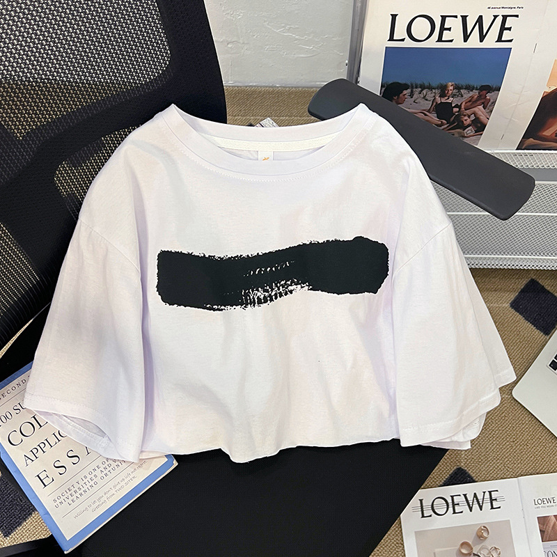 辣妹夏季短款短袖T恤女宽松显瘦街头风创意印花高腰露肚上衣