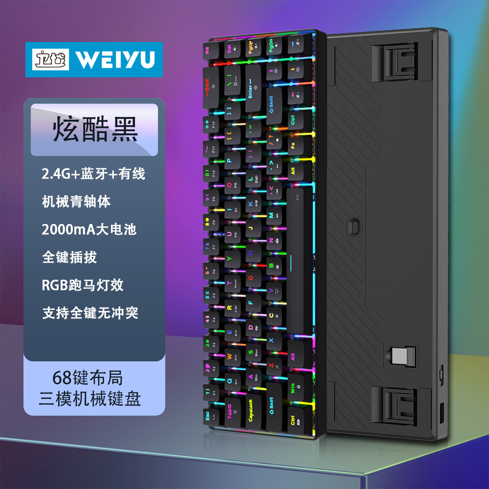 68键无线蓝牙2.4G三模RGB机械键盘插拔电脑笔记本游戏电竞