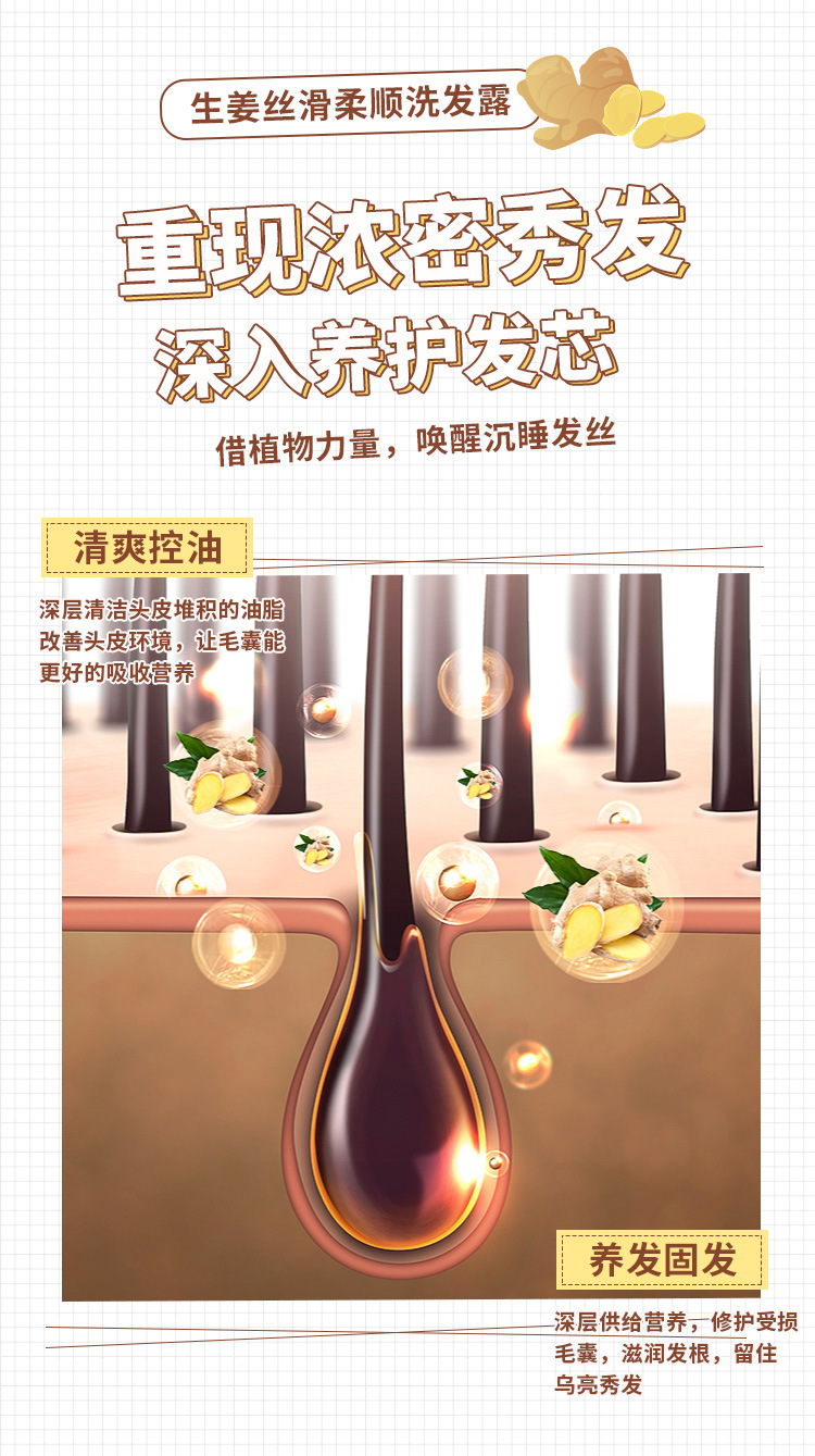 生姜柔顺洗发水护发素250柔顺控油浓密洗发露
