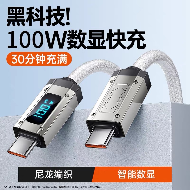 100W数显快充数据线加粗锌合金接口Type-C快充适用苹果15华为通用