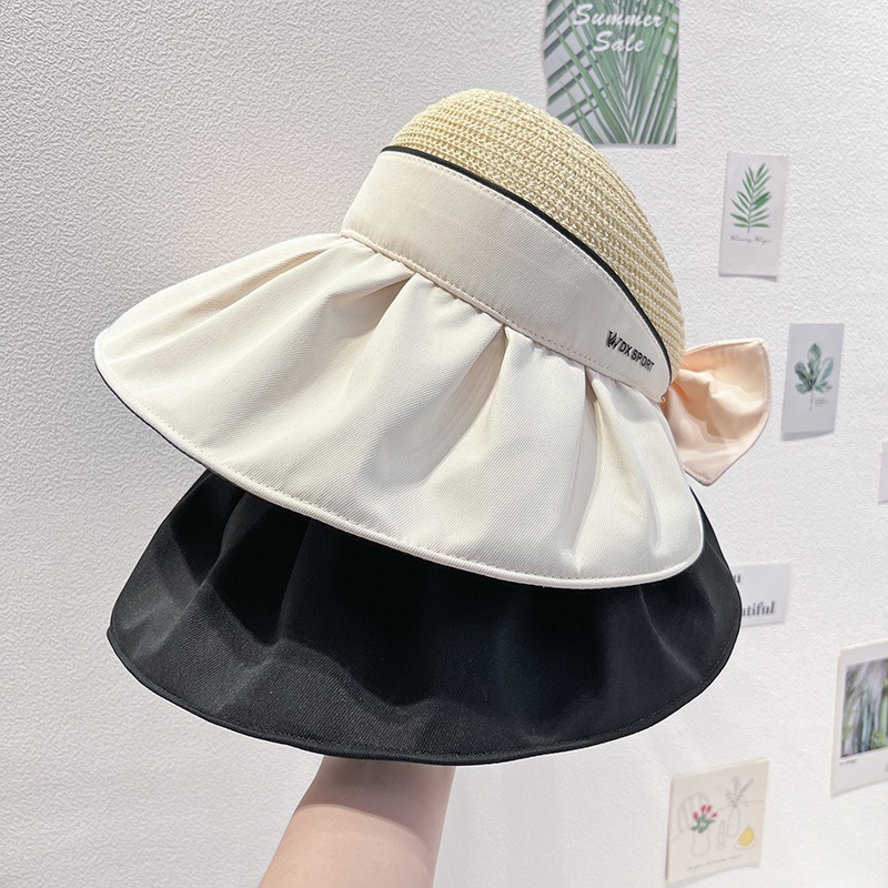 新款黑胶空顶渔夫帽子女夏季百搭防紫外线遮阳帽可扎马尾太阳帽潮