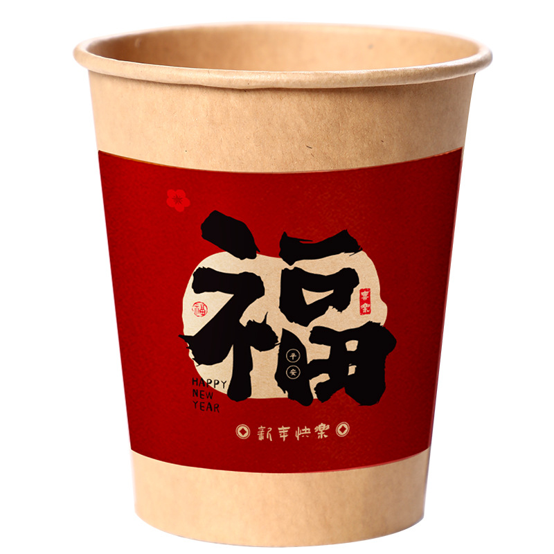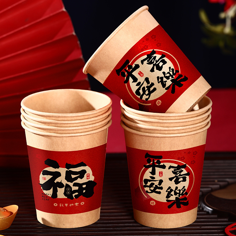 新年春节蛇年2025通用纸杯一次性杯子过年新款加厚喜庆家用水杯
