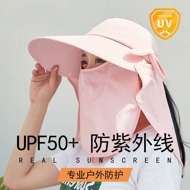 夏季女士太阳帽遮阳帽子可拆卸采茶大檐防晒帽防紫外线面罩渔夫帽