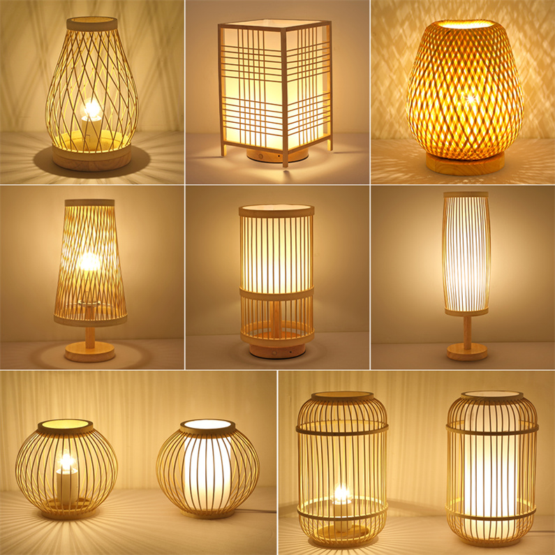 日式氛围台灯可充电复古民宿卧室床头灯茶室古风装饰竹编落地灯具