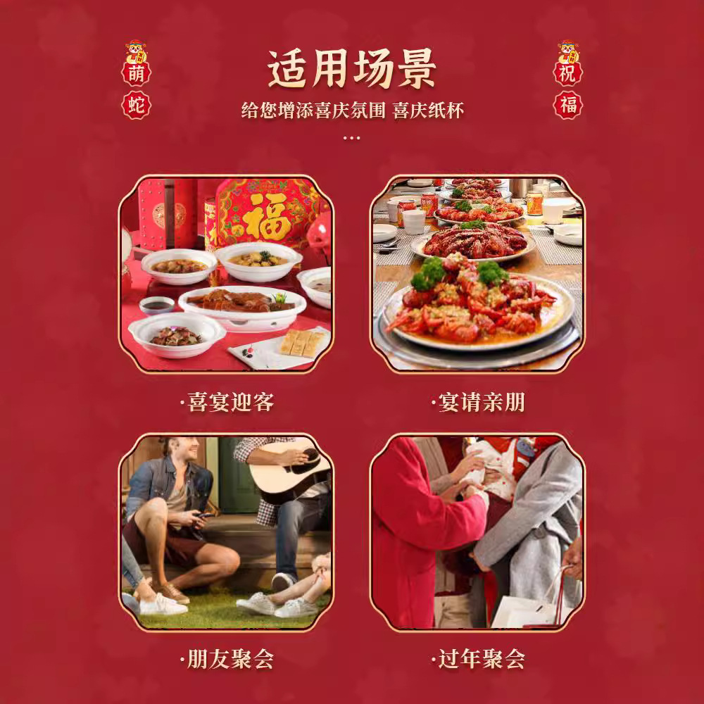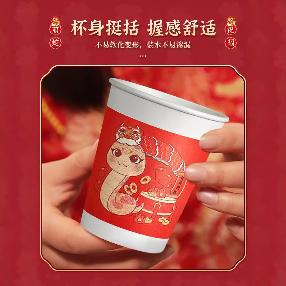 2025蛇年一次性纸杯家用商用泡茶加厚杯子婚庆喜宴热饮杯子