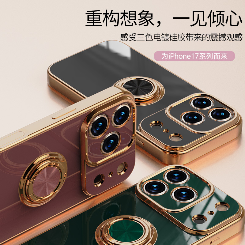 苹果17air手机壳指环扣电镀iPhone16ProMax车载吸磁保护套