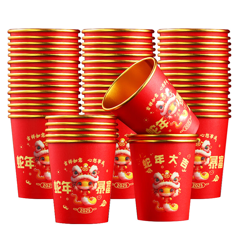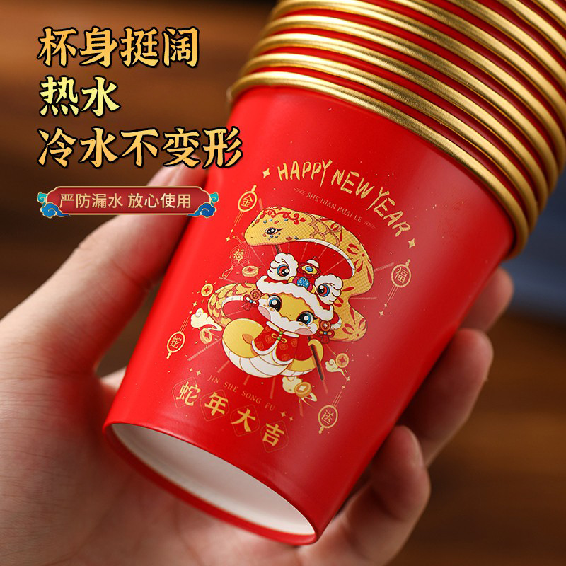 蛇年一次性金箔纸杯2025年新房乔迁春节家用红色喜庆福字杯子