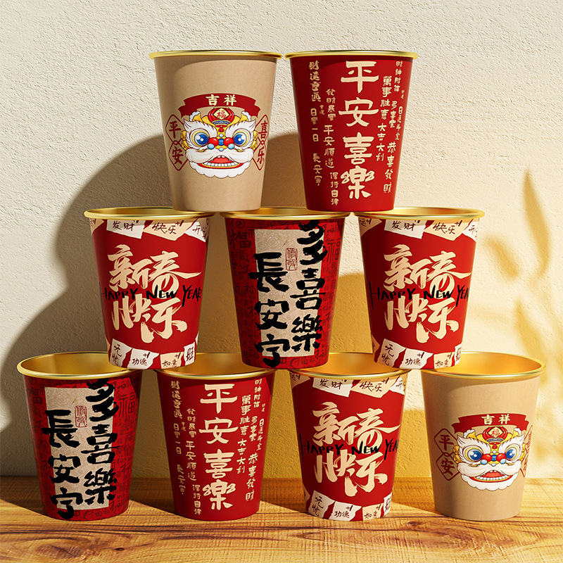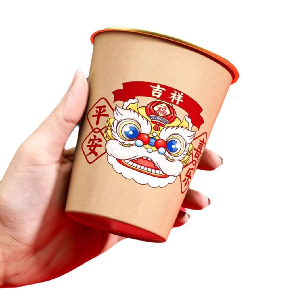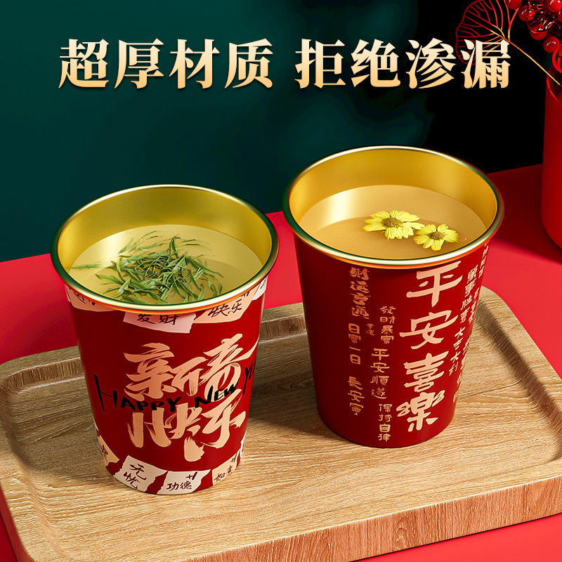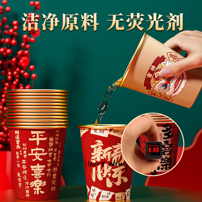 一次性纸杯2025蛇年新年水杯加厚防烫耐高温杯子家用过年春节