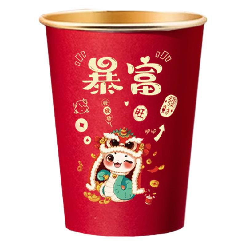 2025新春蛇年金箔纸杯一次性纸杯加厚家用结婚喜庆用品茶杯子