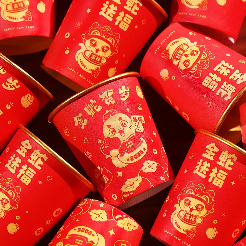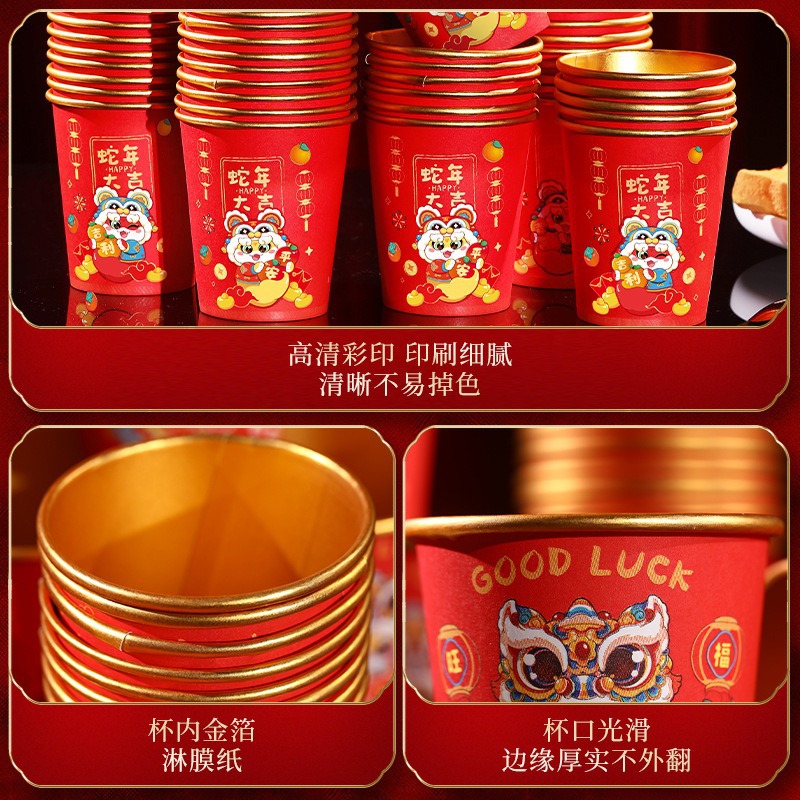 新年蛇年金箔纸杯2025年新款蛇年一次性杯子春节过年加厚水杯茶杯