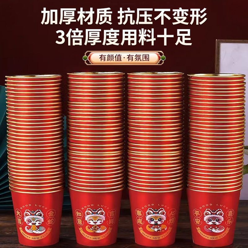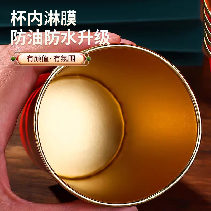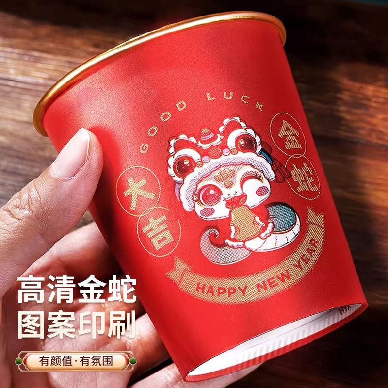 金箔蛇年家用春节纸杯加厚一次性新年过年货迎客金箔杯子高档水杯