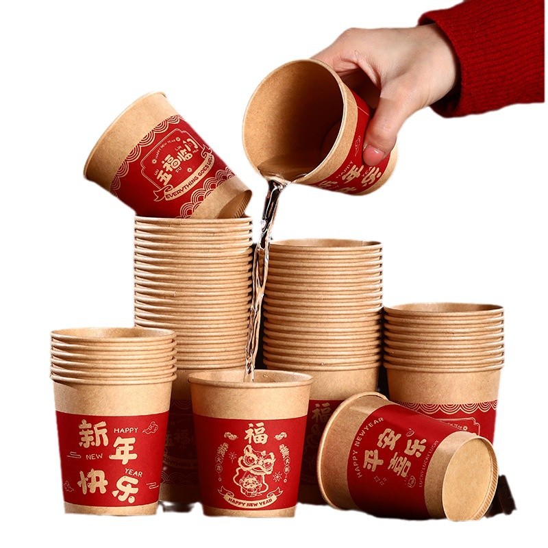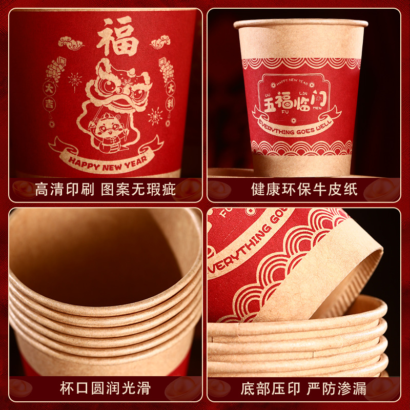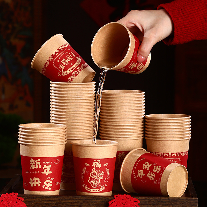 2025蛇年新年一次性纸杯纸碗春节过年家用水杯加厚杯子碗筷套装