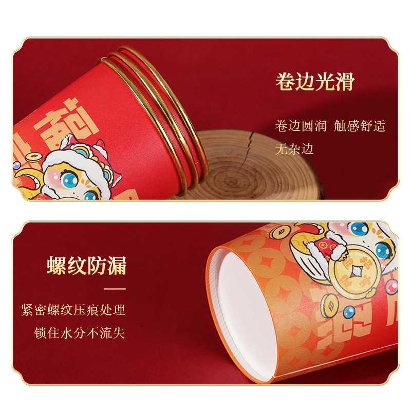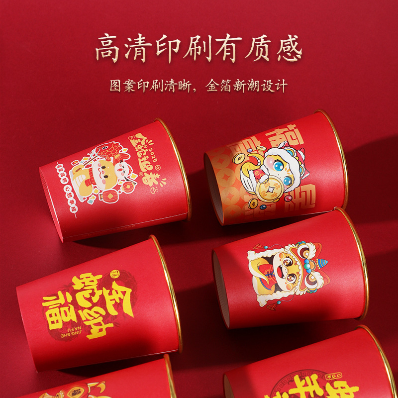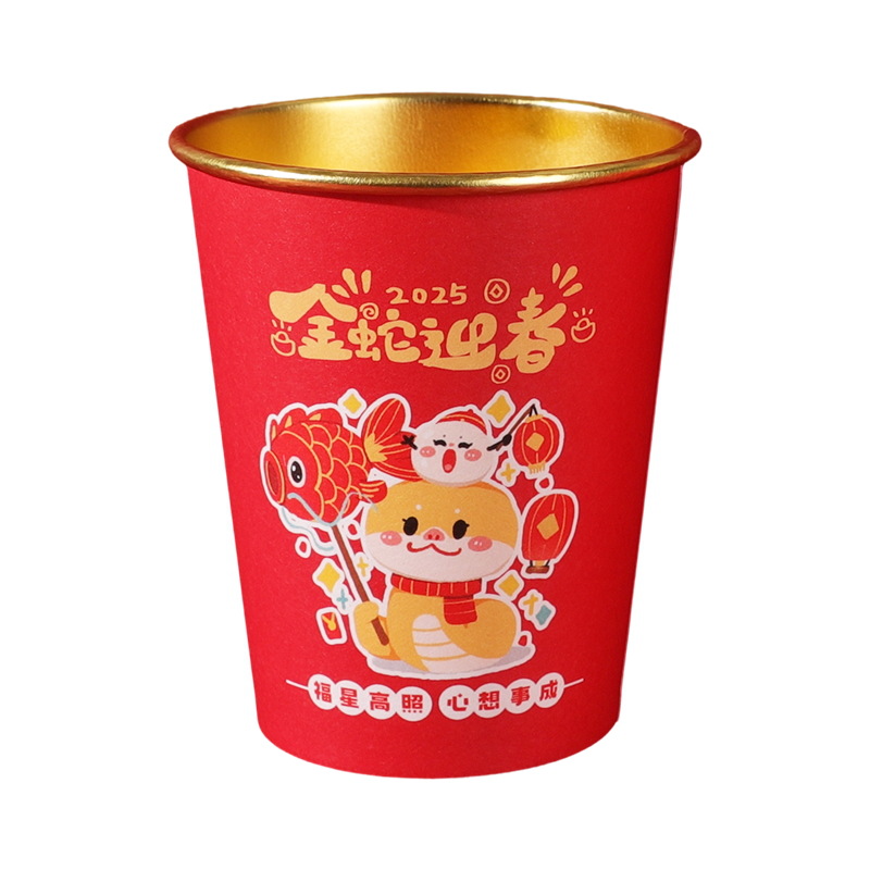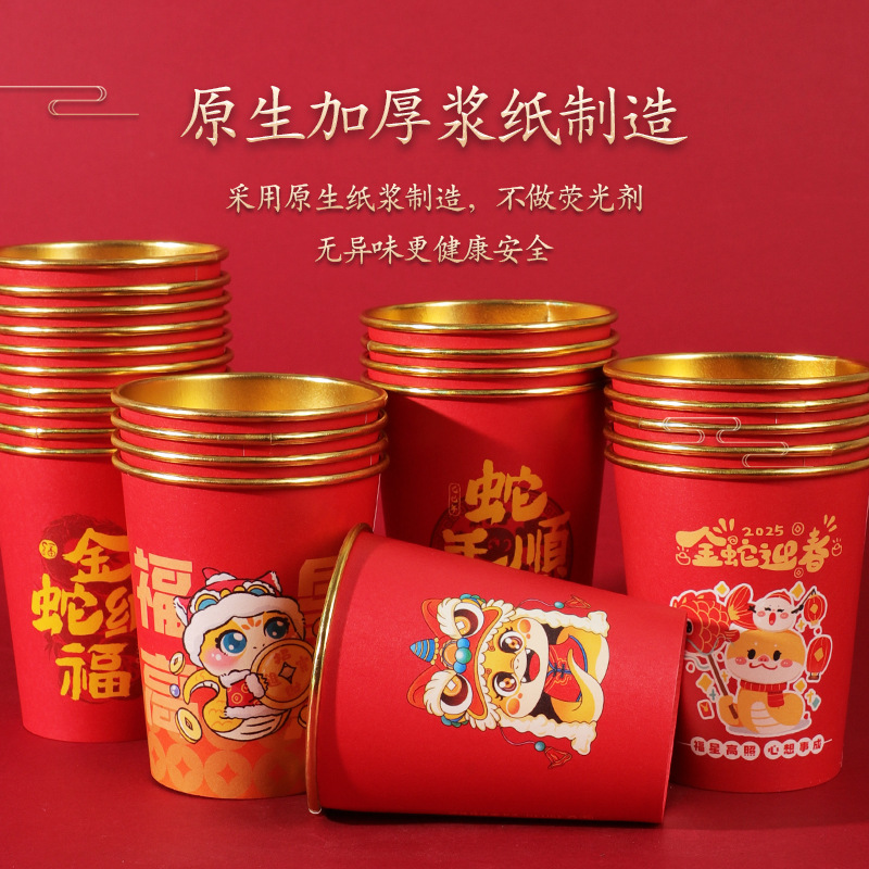 蛇年纸杯喜庆一次性金箔纸杯加厚过新年喝茶水杯子