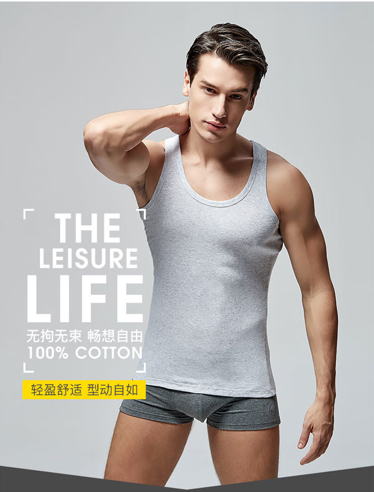 男士背心男纯棉打底衫高弹吸汗透气无袖运动圆领背心