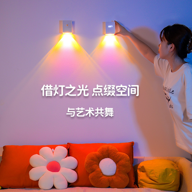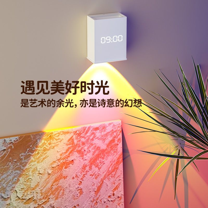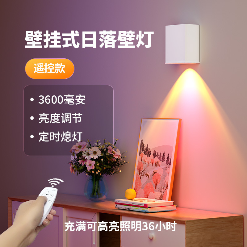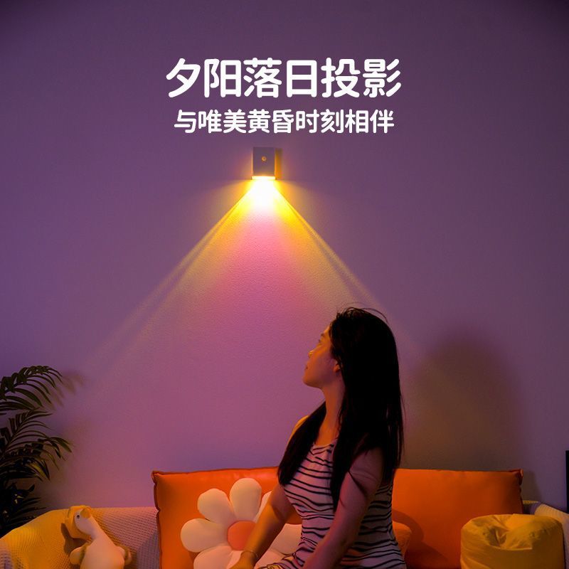 玄关日落氛围灯主卧家用免打孔背景墙上装饰灯拍照影充电墙壁灯
