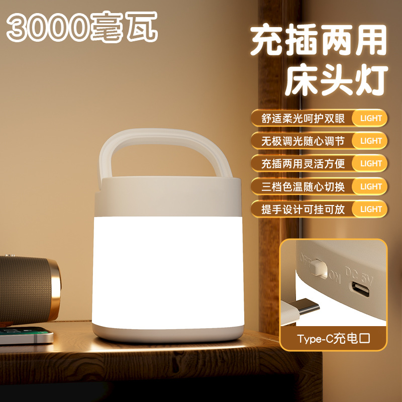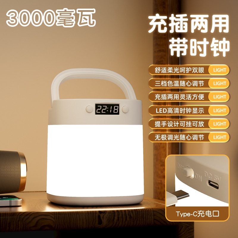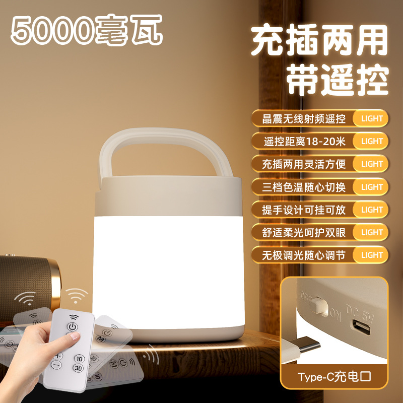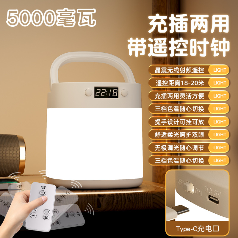 超远遥控手提充电款户外灯床头睡眠婴儿喂奶护眼母婴柔光时钟台灯