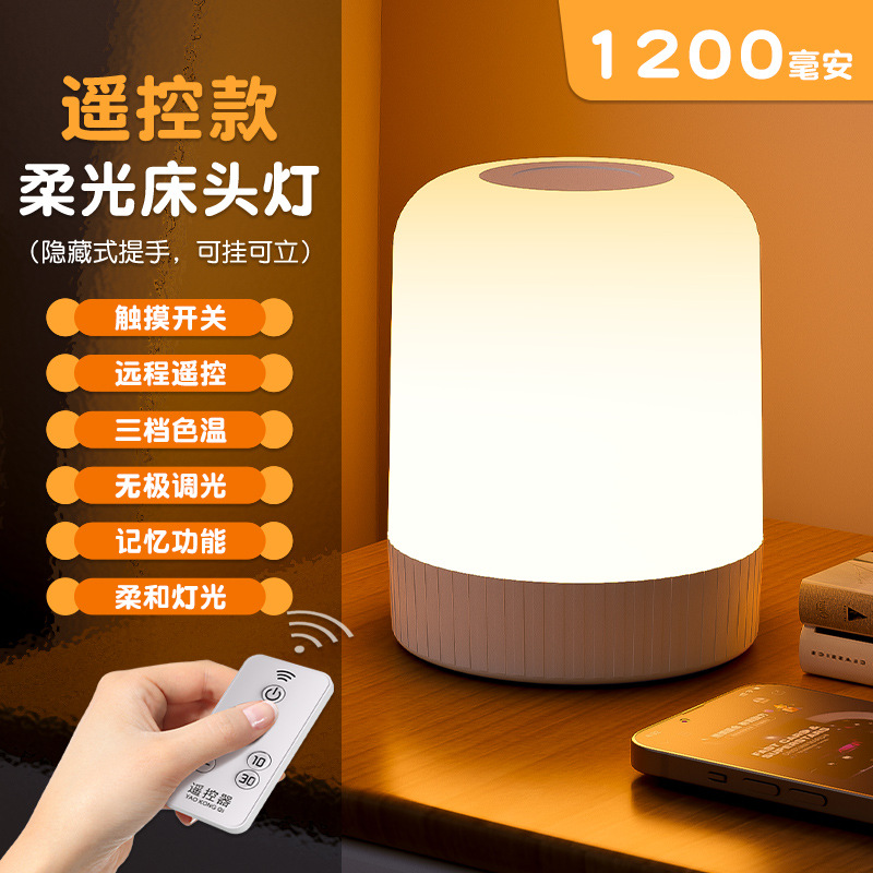 小夜灯遥控床头灯三档调光可挂式充电台灯护眼led应急灯氛围灯