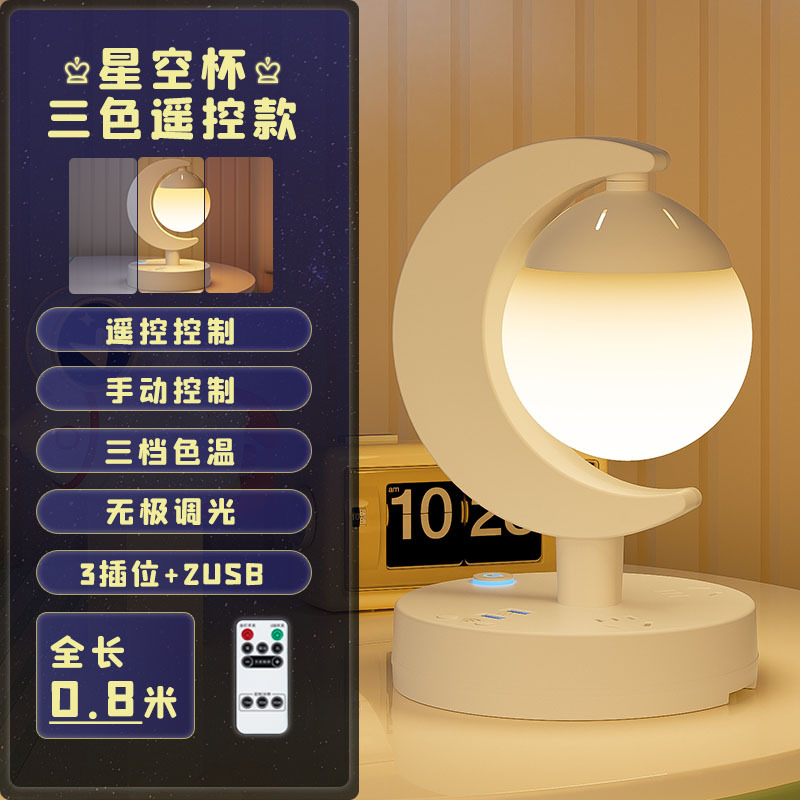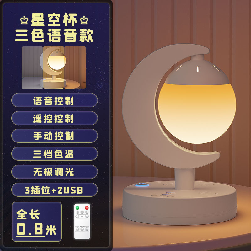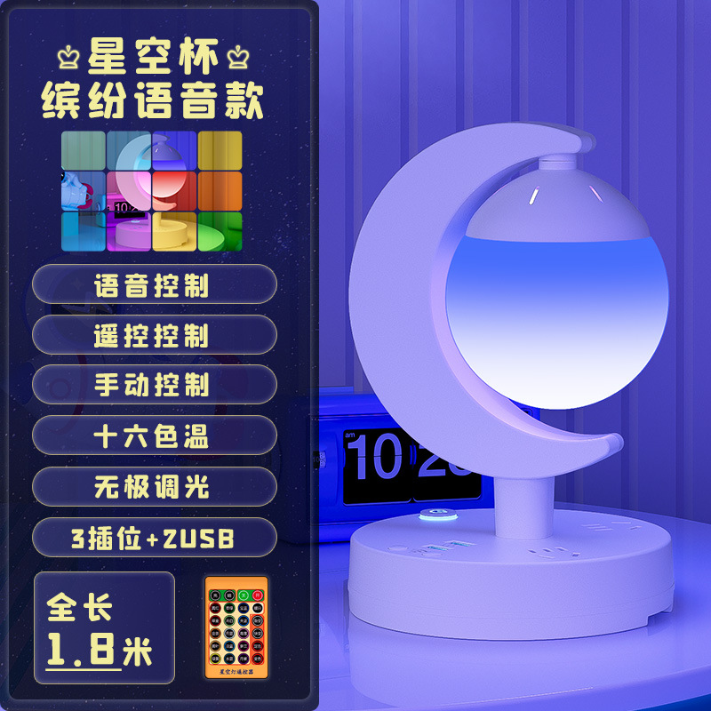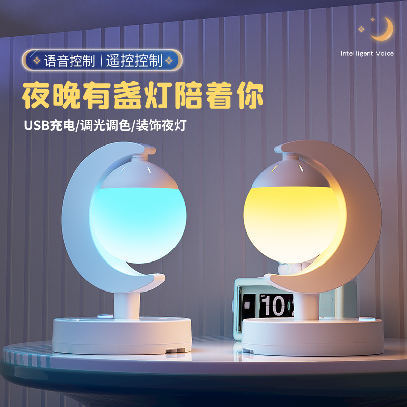 智能语音月球灯usb插座气氛围小夜灯卧室护眼迷你床头led星球灯