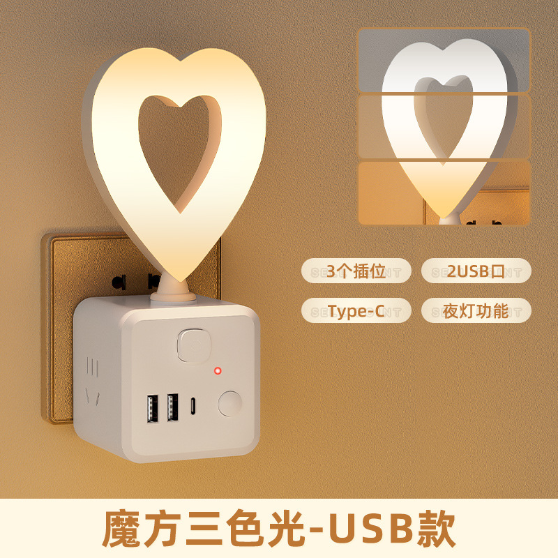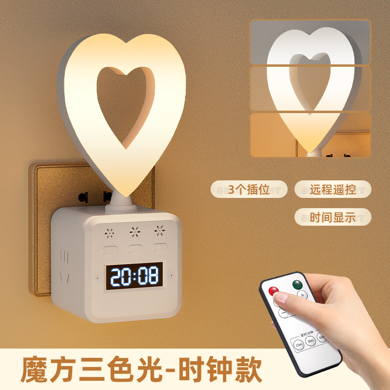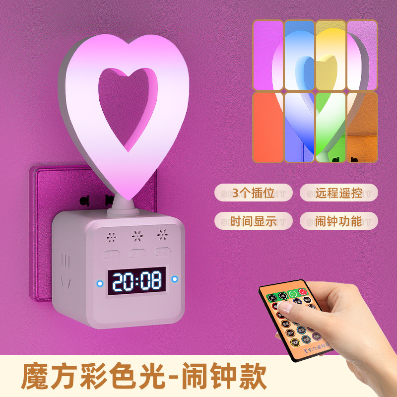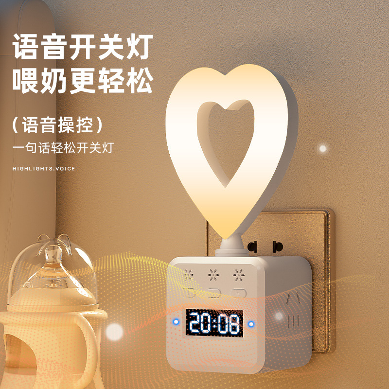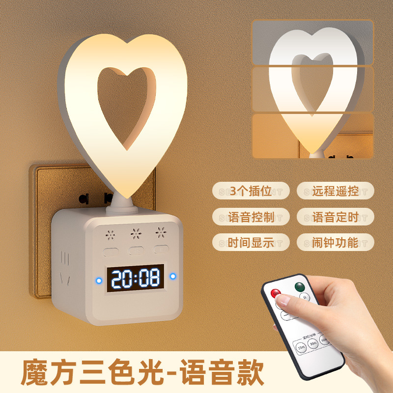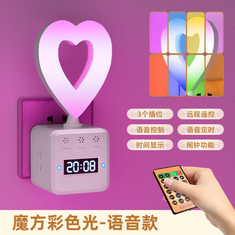 可遥控语音小台灯带闹钟多功能氛围灯起床灯卧室床头小夜灯带插座