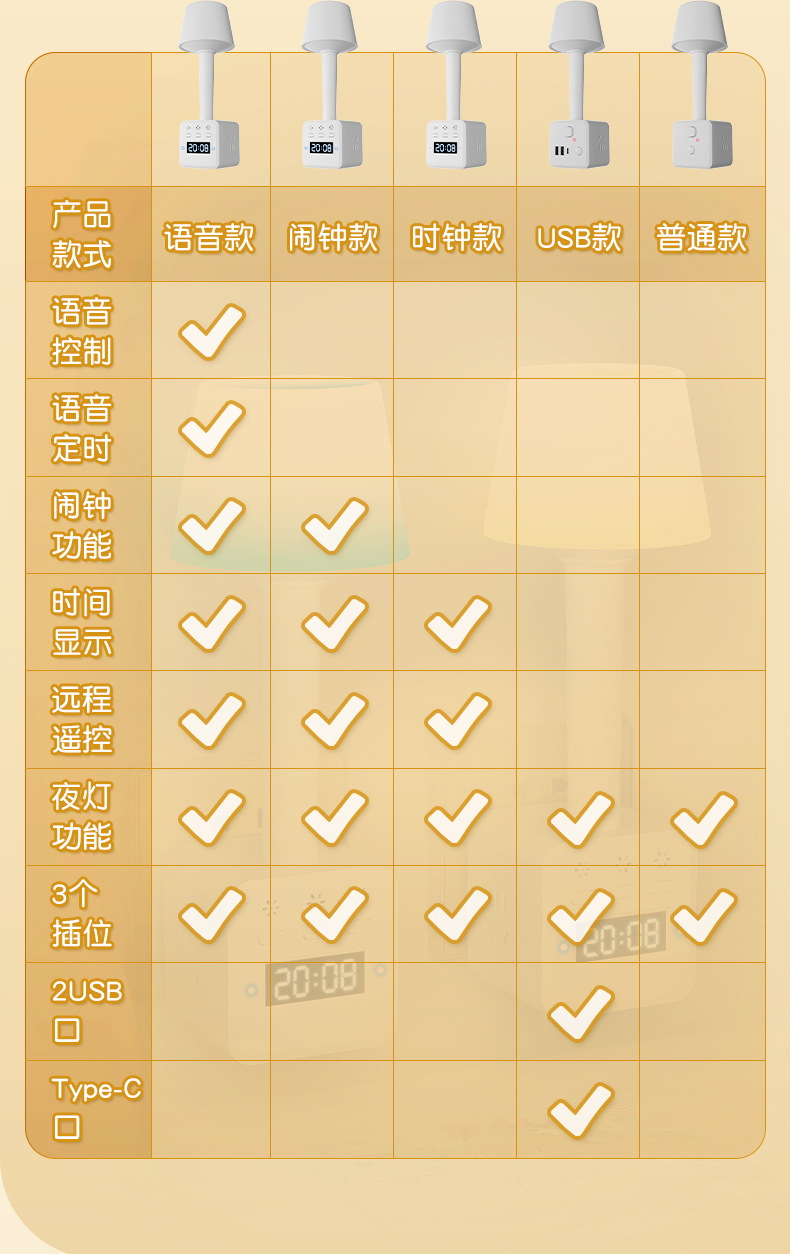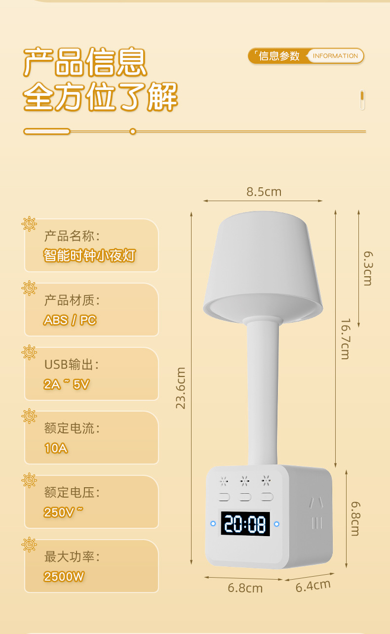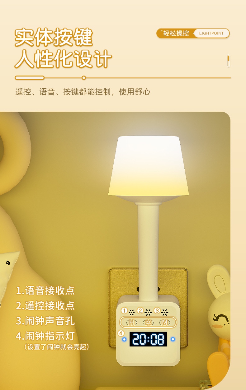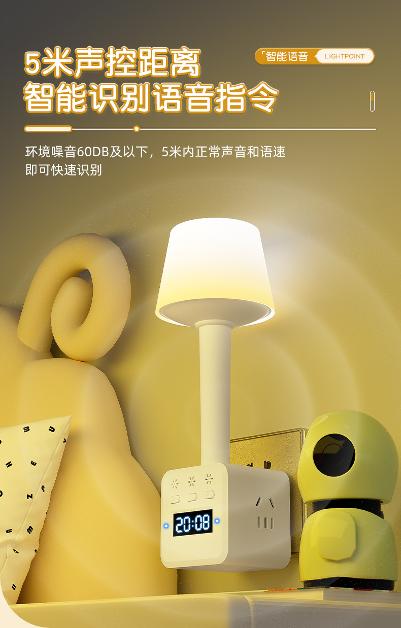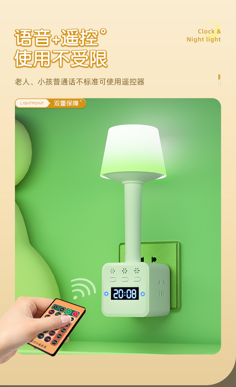 带闹钟语音七彩小夜灯调亮度多功能插座转换插头遥控声控氛围灯