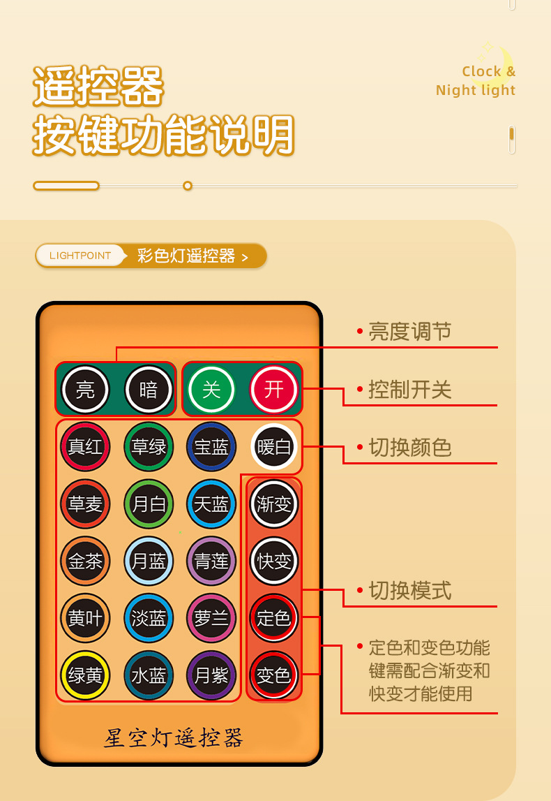 彩色光闹钟款【可遥控】