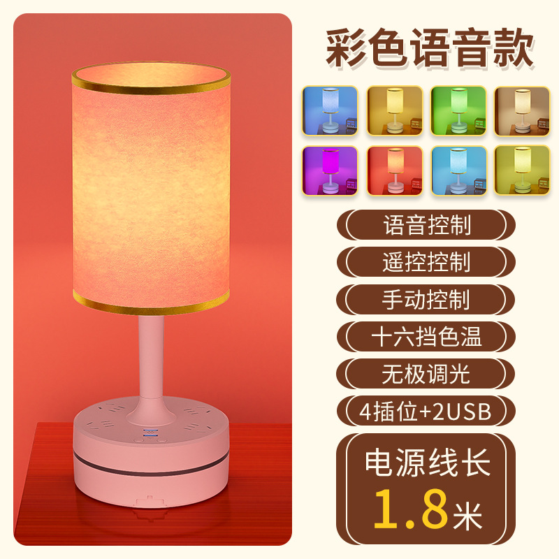 智能语音七彩氛围床头灯民宿酒店装饰灯礼品灯布艺灯高级感台灯