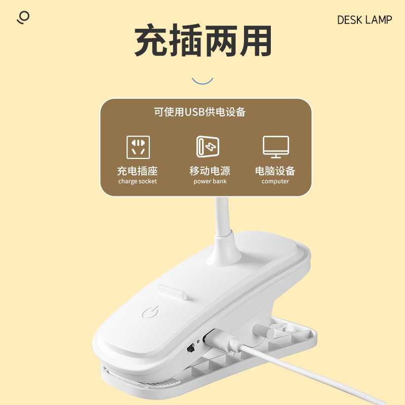 学习专用护眼台灯夹子小夜灯宿舍充电led床头阅读灯跨境 学生礼品