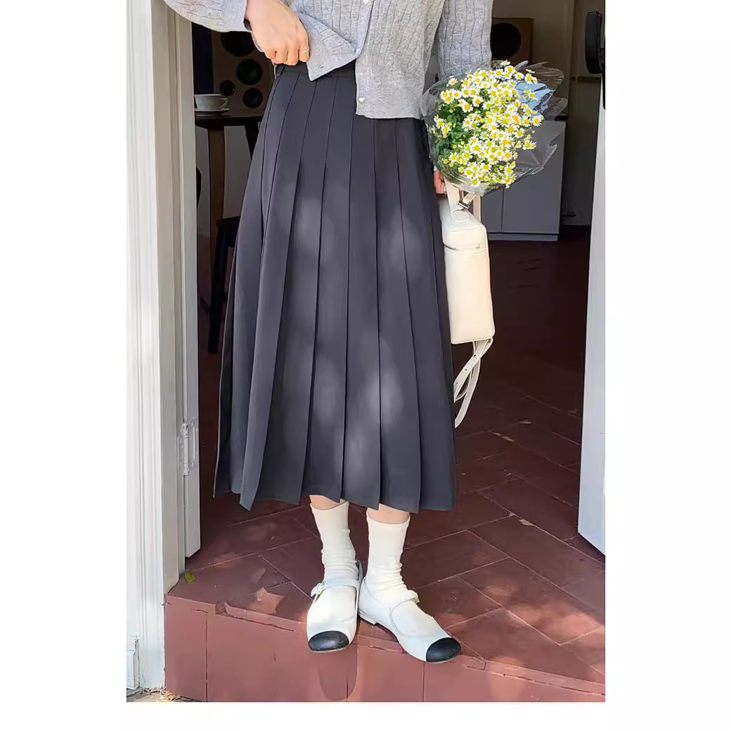 听风归/附赠腰带灰色百褶裙女新款a字长裙小个子高腰半身裙秋