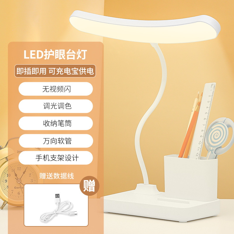 学生学习专用护眼触摸式阅读台灯笔筒宿舍床头灯充电软管灯