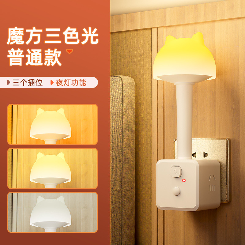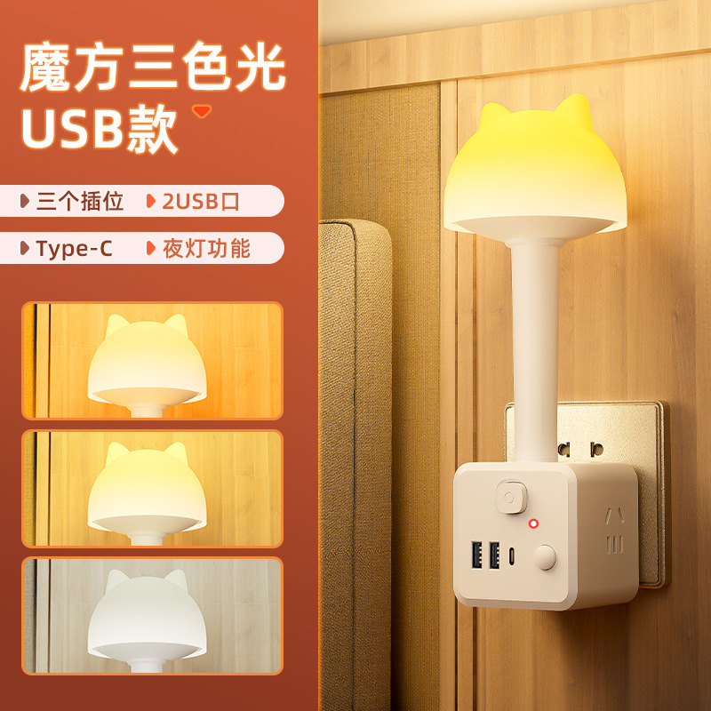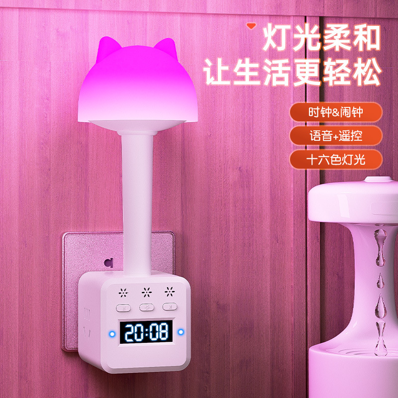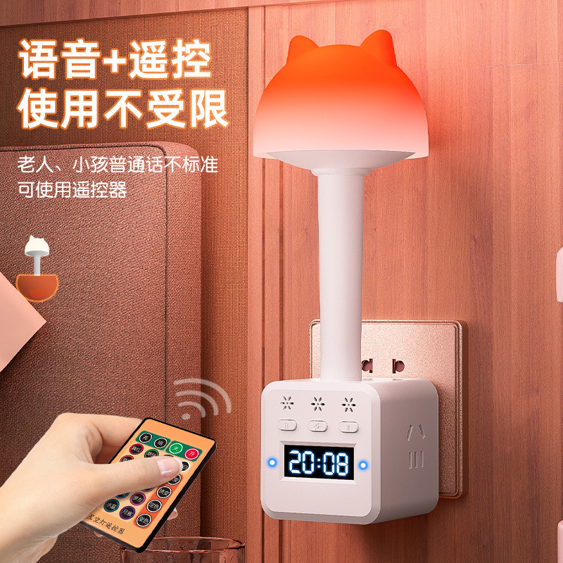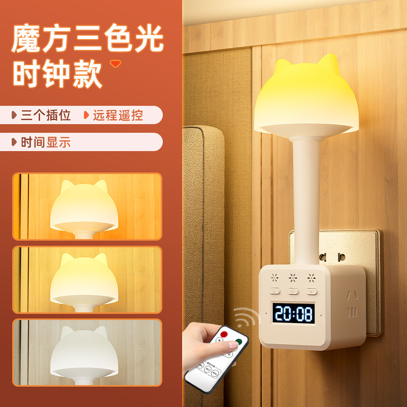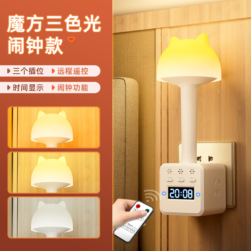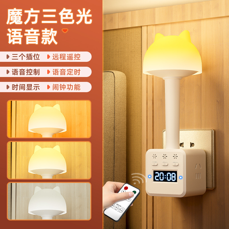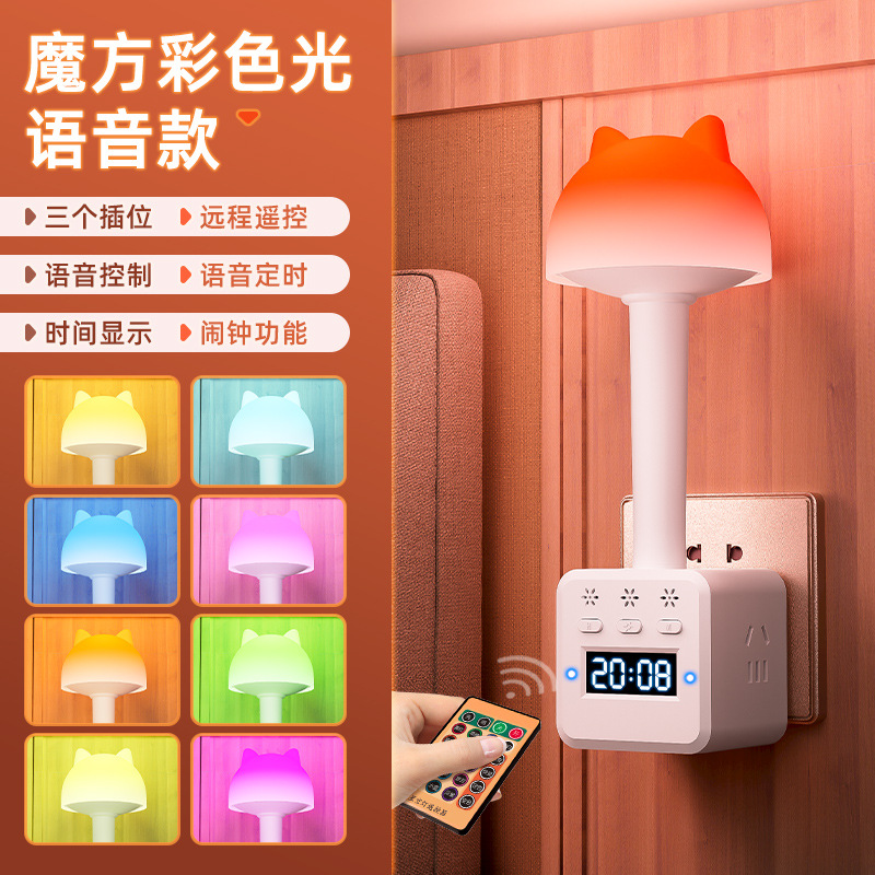 多功能兔头语音床头灯遥控小夜灯带闹钟魔方夜灯插座转换器led灯