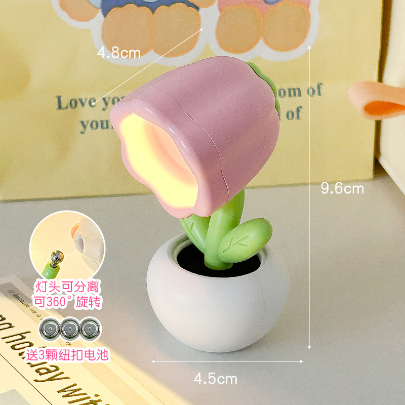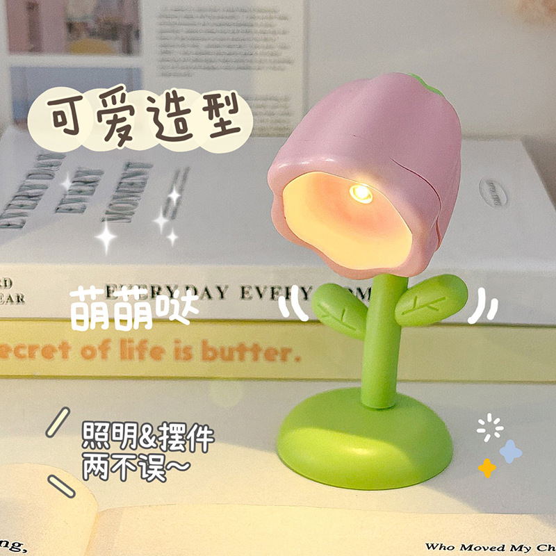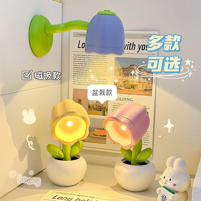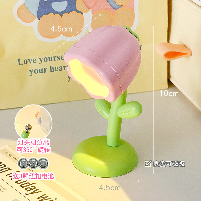 创意花朵小夜灯桌面摆件迷你小花睡眠护眼灯女生可爱磁吸