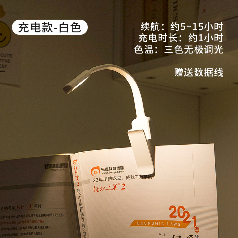 - 便携夹书灯充电款-白色 (起夜不怕黑)