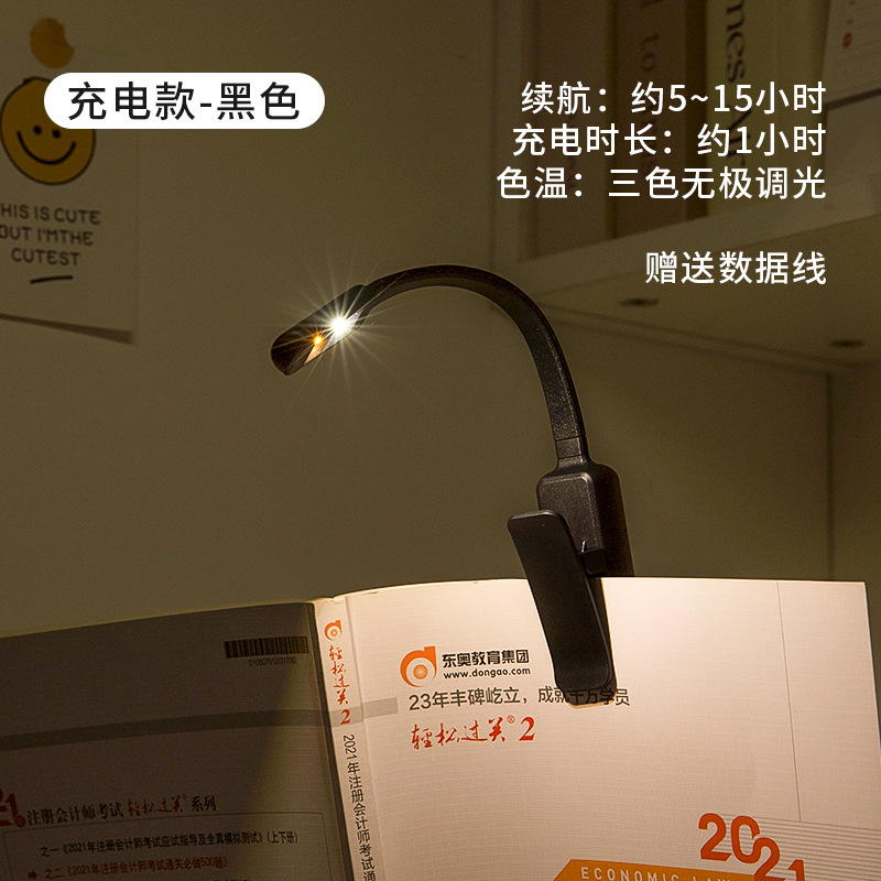 - 便携夹书灯充电款-黑色 (起夜不怕黑)