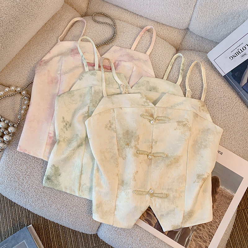 新中式国风盘扣碎花小吊带无袖背心女夏季新款内搭短款上衣潮