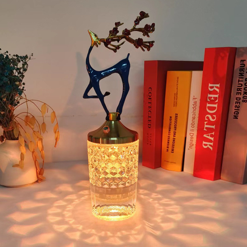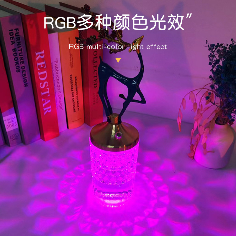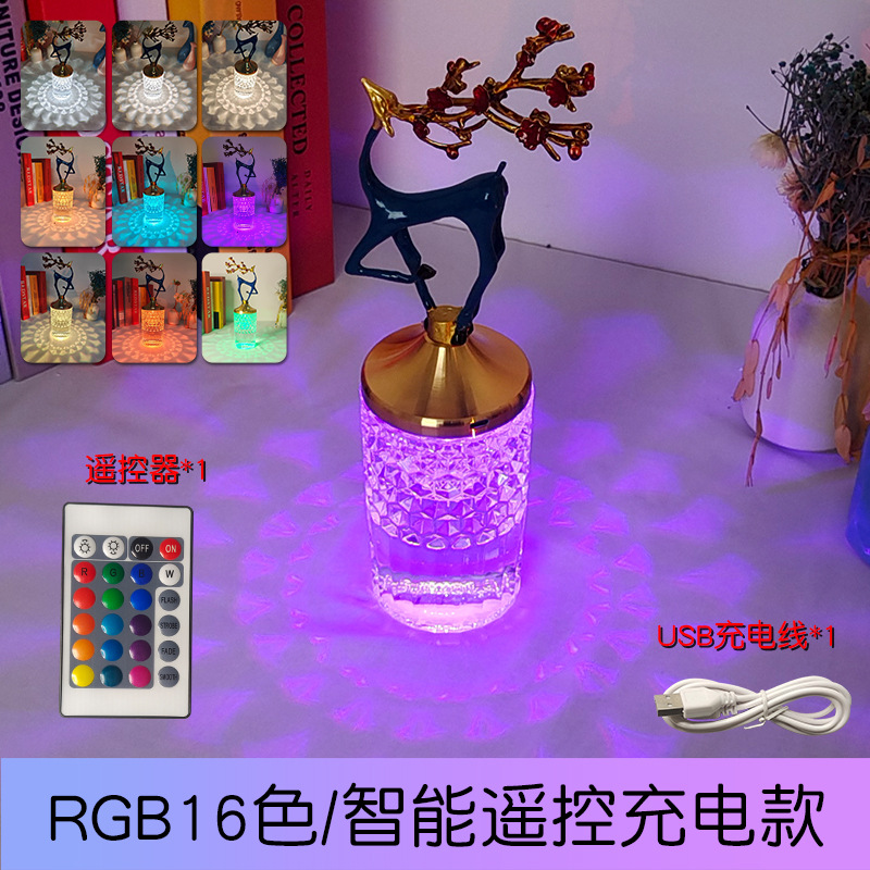 新款跨境创意氛围梅花鹿小夜灯装饰触摸充电床头小台灯摆件装饰灯