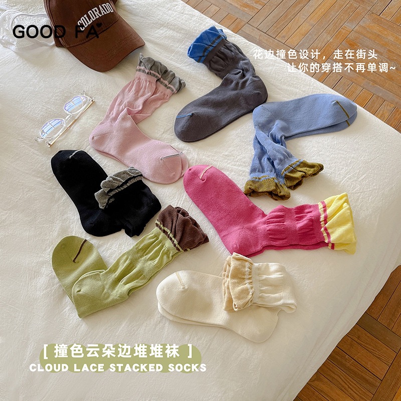 2025年春夏新款撞色移圈云朵花边日系堆堆袜女袜