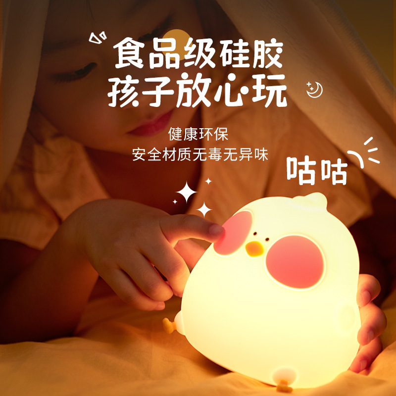 创意新款咕咕鸡硅胶小夜灯可爱卧室LED小夜灯儿童卡通硅胶拍拍灯
