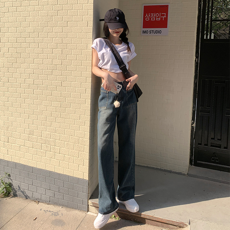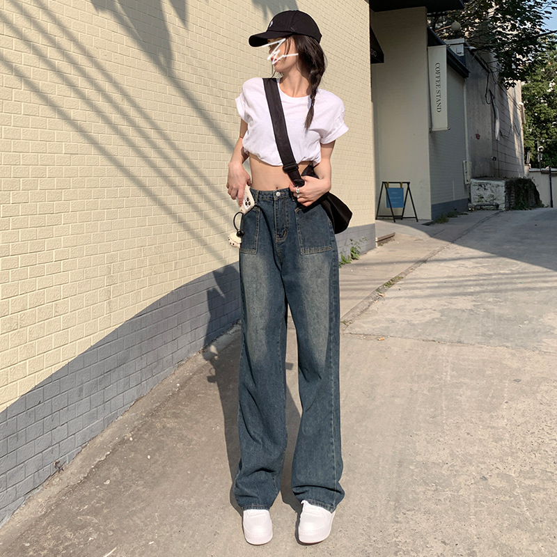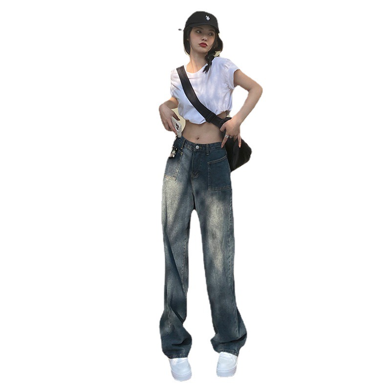 狸舍#美式牛仔裤女秋冬新款宽松阔腿裤高腰直筒显瘦女装裤子
