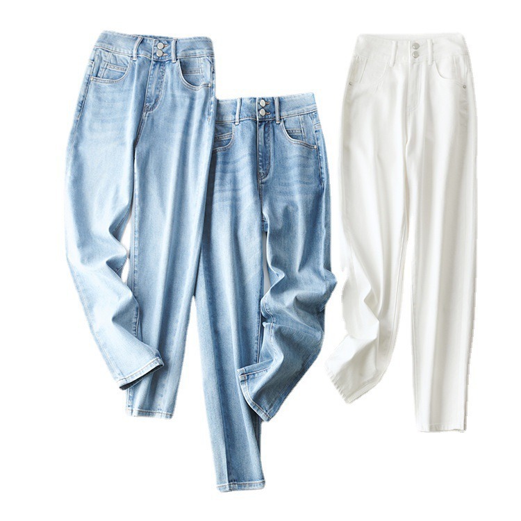 桑蚕丝牛仔裤女春新款韩版显瘦两粒扣高腰休闲长裤真丝老爹裤