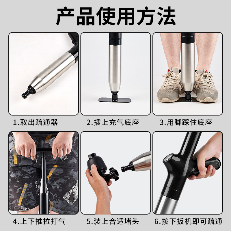 新款马桶疏通器一炮通下水道神器厕所厨房强力通管道堵塞专用工具