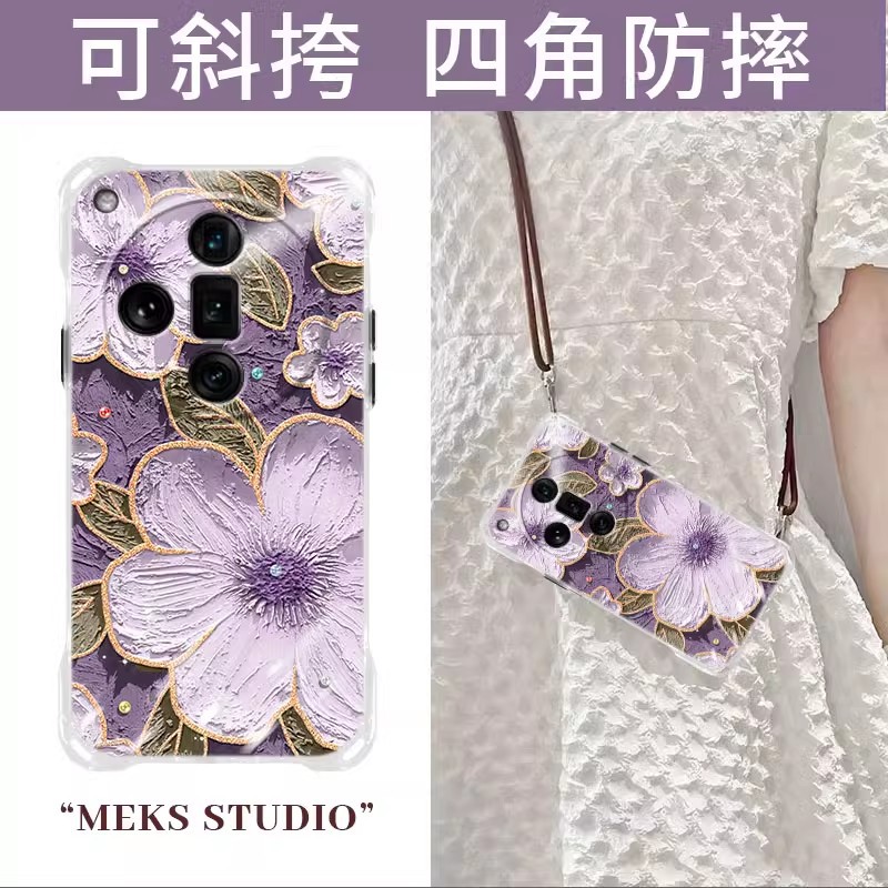白茶花适用oppofindx7手机壳油画花朵新款女findx7pro斜挎软壳
