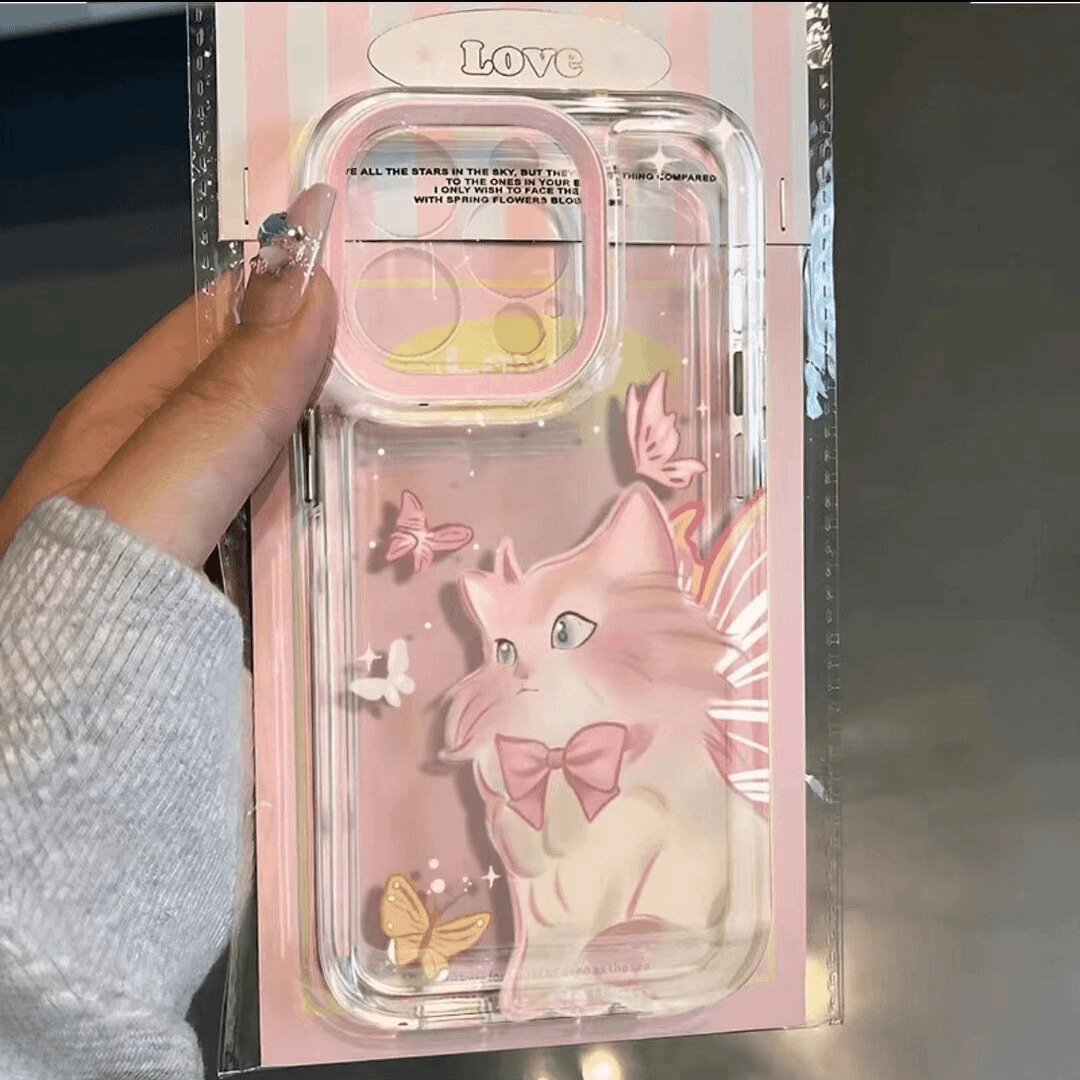 可爱蝴蝶粉猫适用苹果15PROMAX手机壳iPhone14/13软壳12清新11/XS