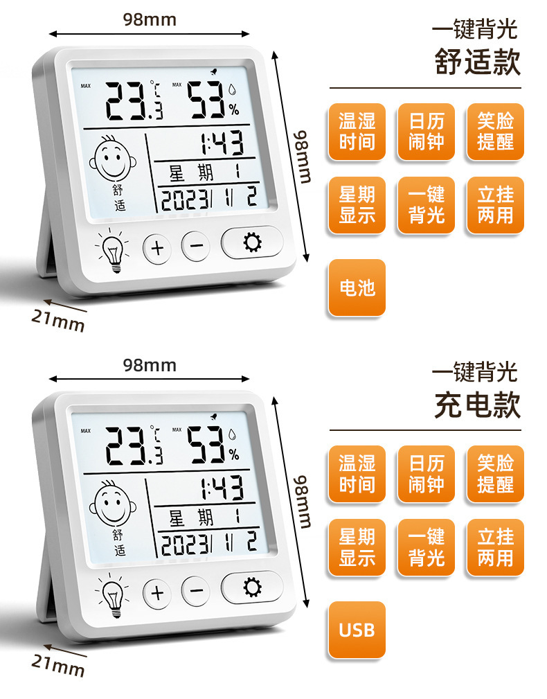 数显温度计桌面电子温湿度计闹钟母婴家用壁挂温湿度室内室外