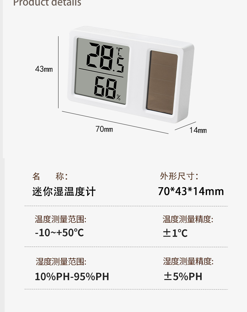 太阳能电子数字屋内湿度计家用精度温度计迷你款
