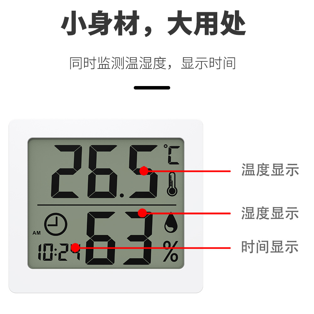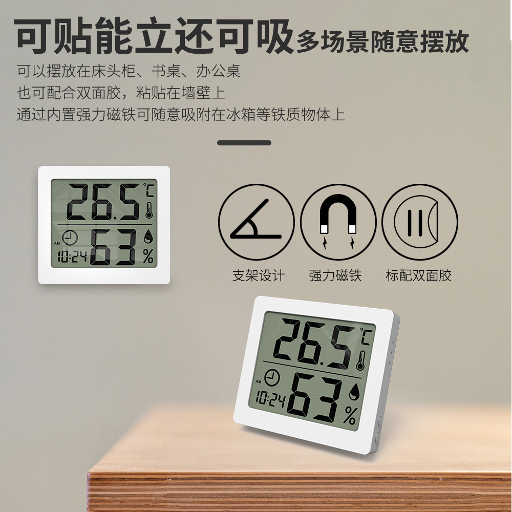 大屏超薄家居电子数字温湿度计家用温度计室内干湿度表带时间显示