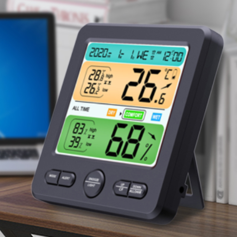 多功能数显温湿度计 家用大屏幕带温湿度报警 环境舒适度电子时钟