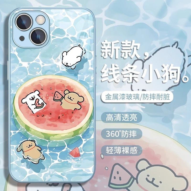 适用苹果16Plus手机壳14promax水果13pro西瓜12线条小狗11玻璃x