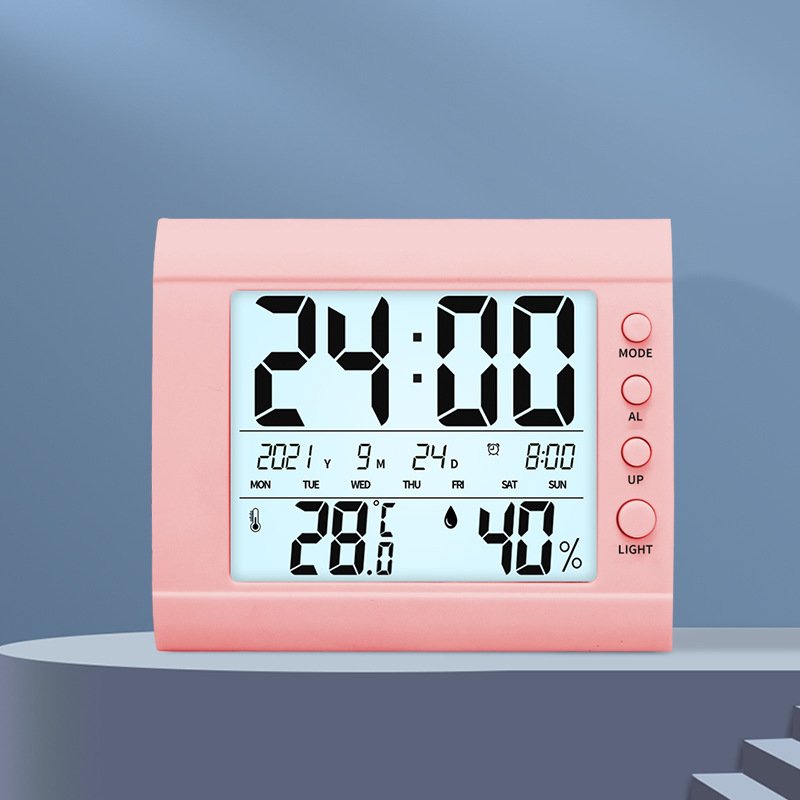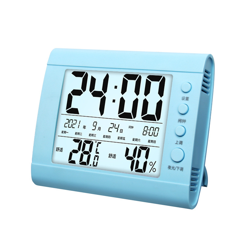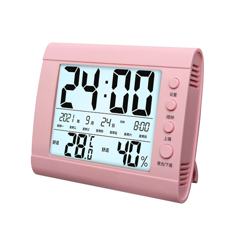 室内电子温湿度计夜光大屏数显桌面小闹钟家用干湿温度计