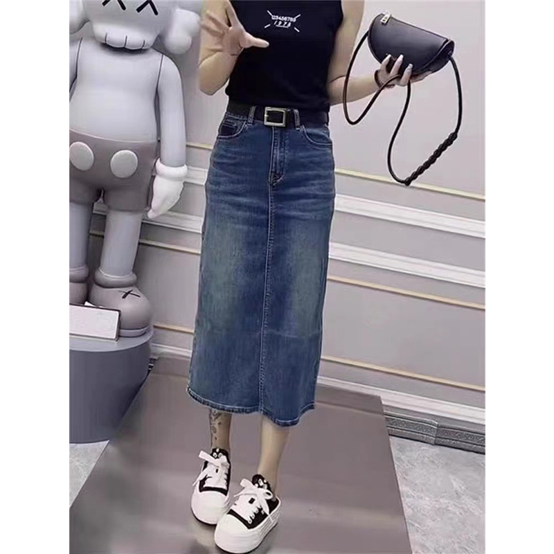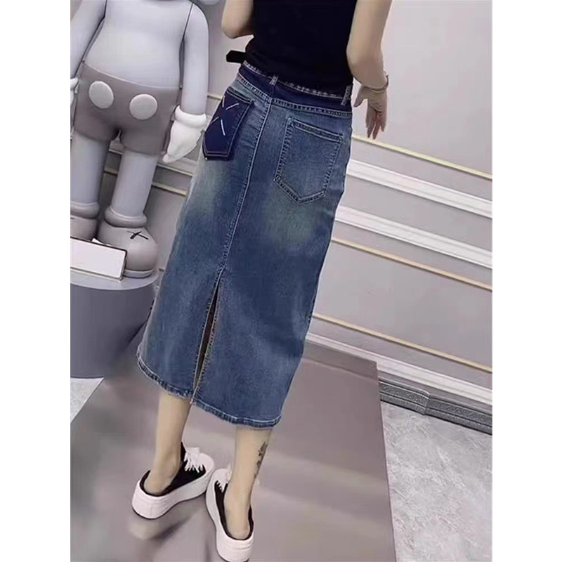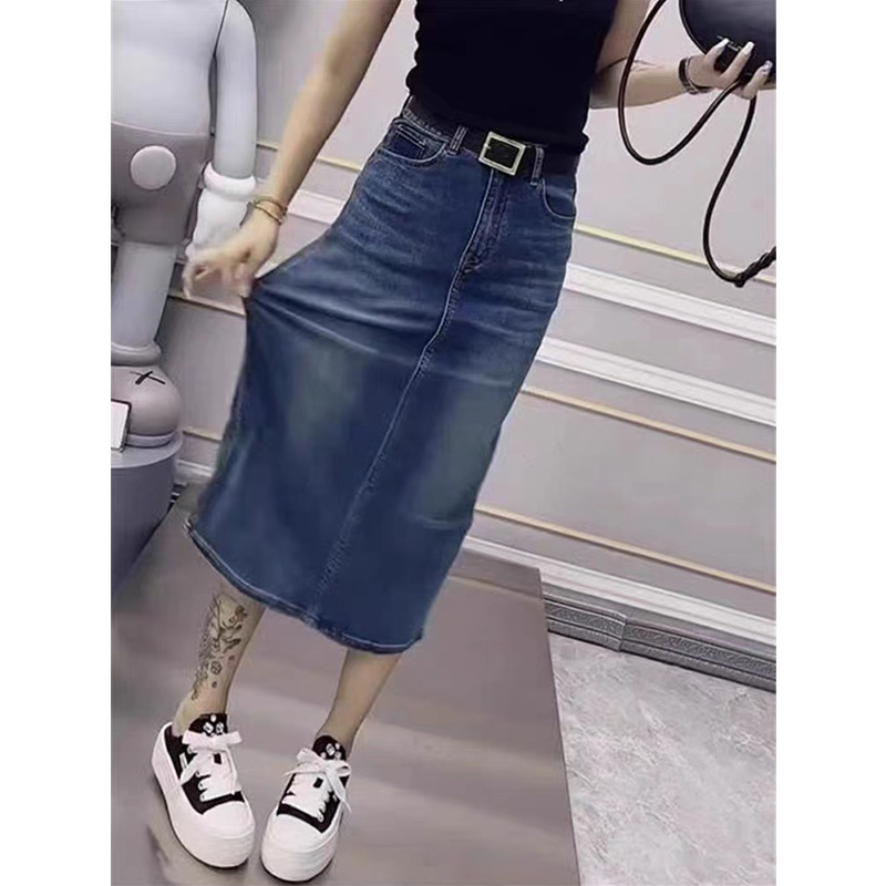 大码弹力开叉牛仔半身裙女秋冬胖mm高腰显瘦中长款a字包臀长裙子